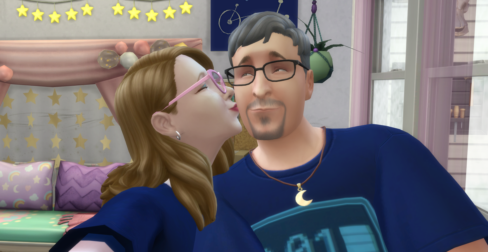 This year, instead of playing my Sims Legacy Family as I have for most previous years, I’ll be playing Sims created in the likenesses of myself and my partner Harold. I had them commissioned from photographs of us in 2021 but rarely play them because I never know what to do with them and I’m scared of jinxing myself or manifesting more than I can handle IRL! (True story! 😆) Their names in the game are Sunny Moody and Harry FromBarrie!